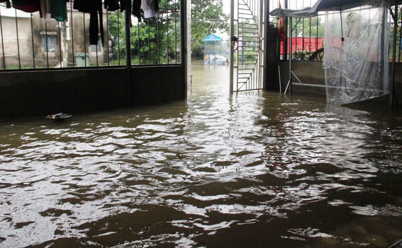 Nước lũ tràn vào nhà. |