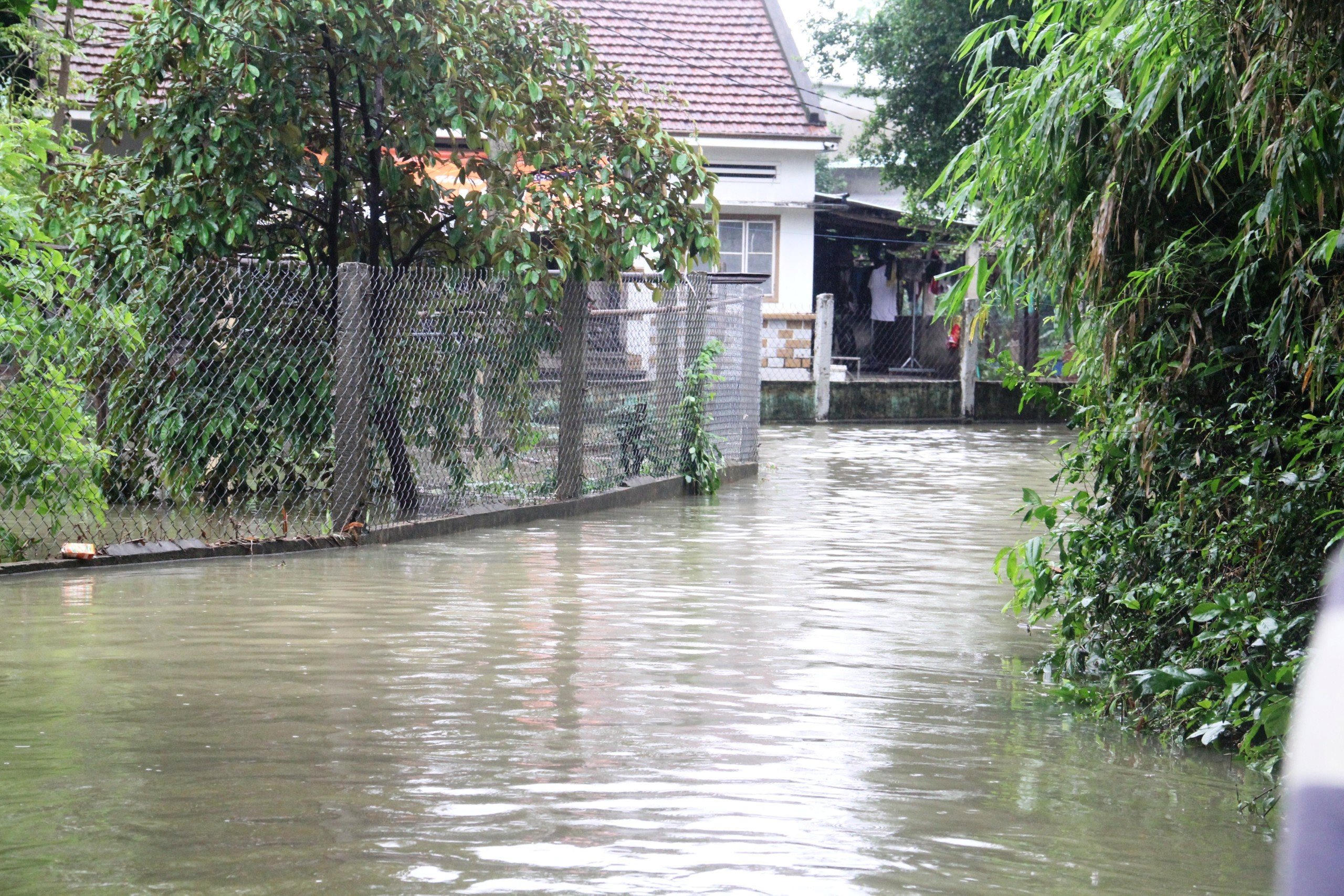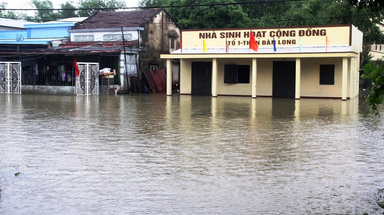 Hầu như cả khu dân cư Đàn Long (xã Tam Đàn, Phú Ninh) ngập nước. |