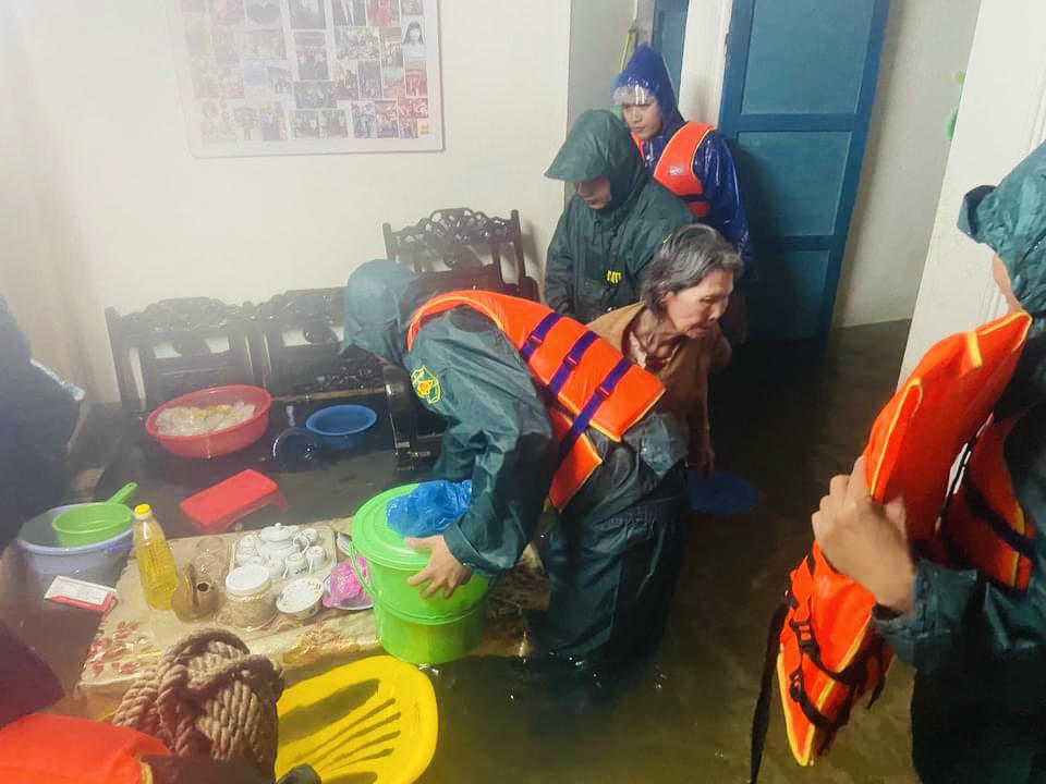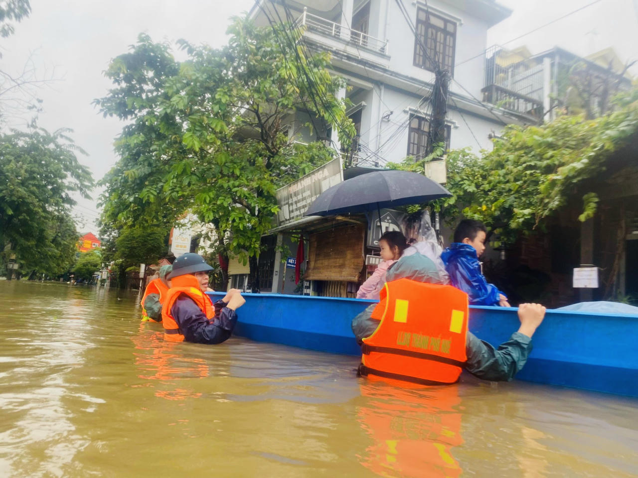 Lực lượng chức năng di dời người dân khỏi nơi ngập lụt nguy hiểm, chuyển đến các địa điểm an toàn. |