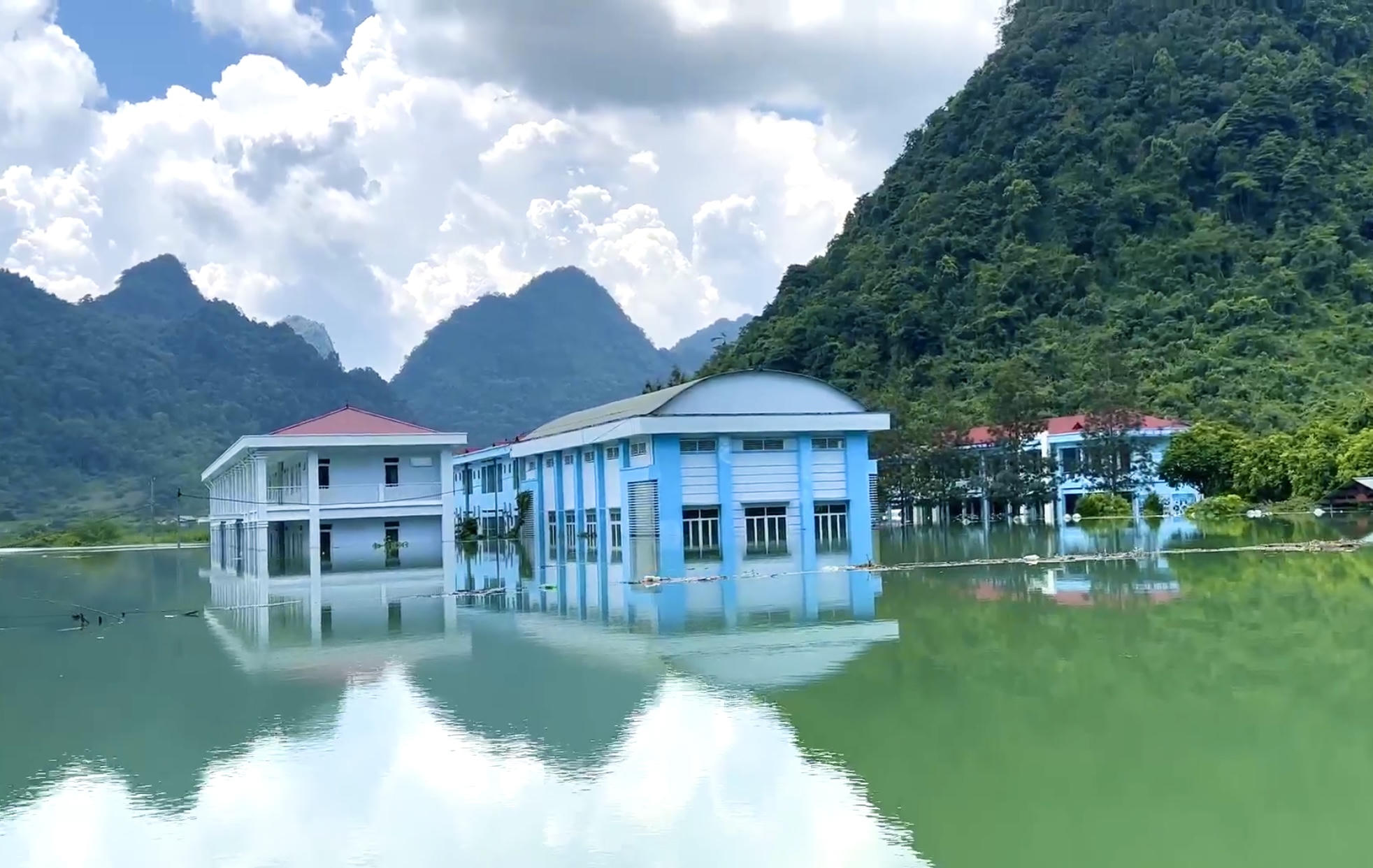 Nước ngập sâu, người dân phải bỏ nhà lên vách núi lập lán để trú ẩn tạm thời. Đồng thời, mưa lớn kéo dài đã làm các trường học tại xã nước ngập sâu gần 3 ngày nay, gây ảnh hưởng đến cơ sở vật chất của nhà trường khi mà năm học mới của các em học sinh sắp bắt đầu khai giảng năm học mới vào những ngày tới.