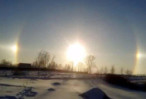 Cảnh tượng kỳ lạ rõ thấy từ dãy núi Ural tới vùng Viễn Đông xa xôi của Nga. Các nhà thiên văn học cho biết, đây thực chất là một ảo ảnh quang học hiếm gặp, có tên gọi là "mặt trời giả" hay "mặt trời ảo", và đôi khi được người dân địa phương coi là điềm xấu.