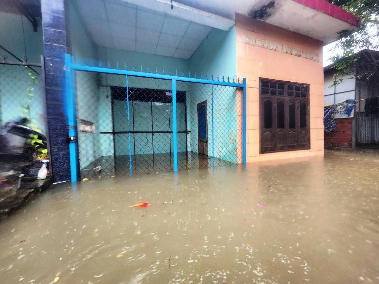 Tại khu vực thị trấn Ái Nghĩa, huyện Đại Lộc, nước sông cũng đang lên nhanh gây ngập khu dân cư số 3.