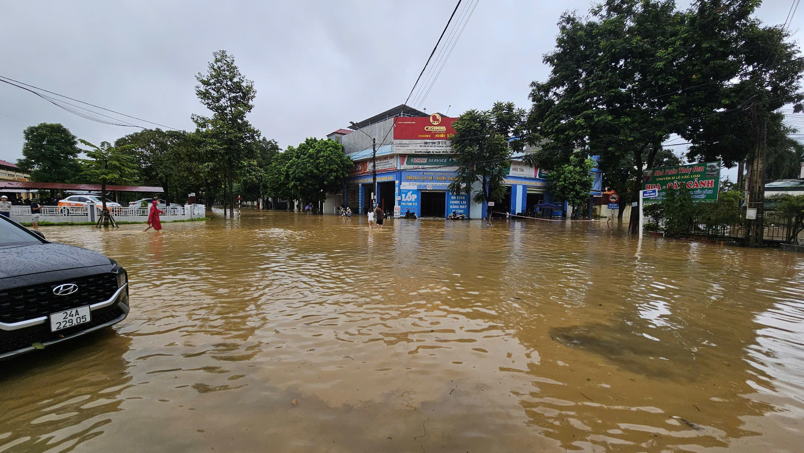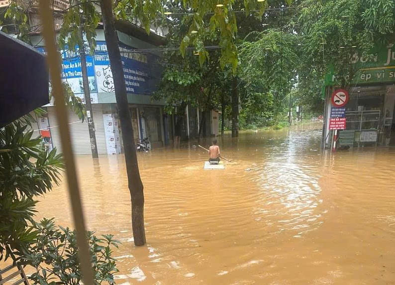 (PLVN) - 12h ngày 9/9, nước sông Hồng tại khu vực TP Lào Cai (tỉnh Lào Cai) dâng cao, nhiều khu vực đã ngập lụt, có nơi ngập sâu gần 1m.