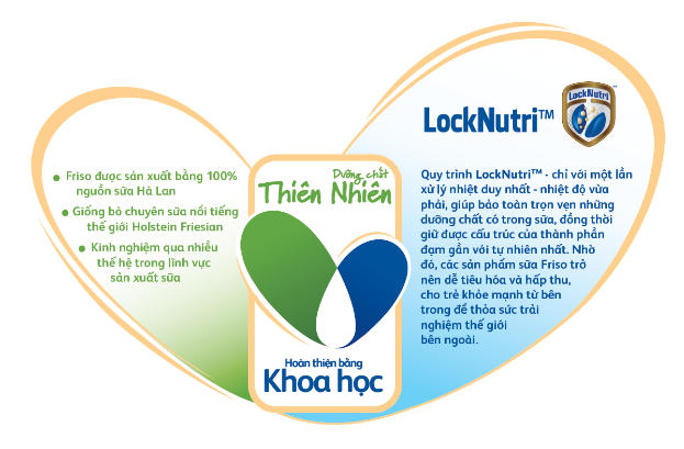 Nhờ vậy, bé dễ dàng hấp thu trọn vẹn nguồn đạm tự nhiên và cũng giảm thiểu triệu chứng táo bón, cho hệ tiêu hóa khỏe mạnh. Đây cũng chính là điều khác biệt độc đáo khiến cho hàng tỷ bà mẹ trên toàn cầu tin chọn Friso với qui trình LockNutriTM cùng sự kiểm soát chất lượng khắt khe từ đồng cỏ đến ly sữa.
