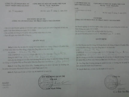 Tìm hiểu các căn cứ liên quan đến việc tặng cho căn hộ nói trên, được biết vào ngày 8/1/2010, Chủ tịch Hội đồng quản trị Công ty CP Đầu tư Phát triển nhà Gia Bảo Trần Mạnh Thắng đã ký Nghị quyết số 9/NQ-HĐQT, trong đó nêu rõ: “Khi dự án nhà D2 Giảng Võ hoàn thành xây dựng, Công ty CP Đầu tư Phát triển nhà Gia Bảo đồng ý tặng cho bà Nguyễn Thị Hải một căn hộ chung cư có diện tích khoảng 84m2 tại tầng 16 nhà D2 Giảng Võ mới do Công ty CP Đầu tư Phát triển nhà Gia Bảo làm chủ đầu tư (phòng 1601)… Nghị quyết này có hiệu lực thi hành kể từ ngày ký”.