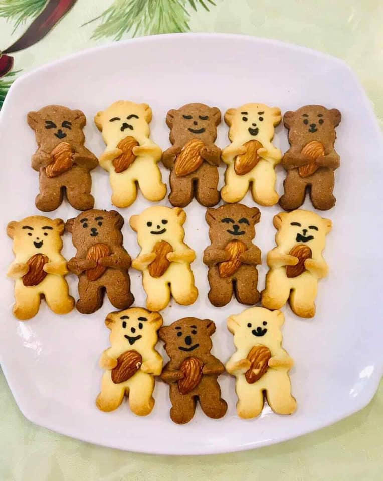 Bánh quy Gấu ôm hạnh nhân. Nguyên liệu chính từ bột hạnh nhân. Chủ nhân những chiếc bánh quy Gấu xinh đẹp này chia sẻ: "bánh ăn vừa tốt vừa thơm. Con vừa ăn vừa cười rất vui". (Ảnh: Nga Nguyễn)