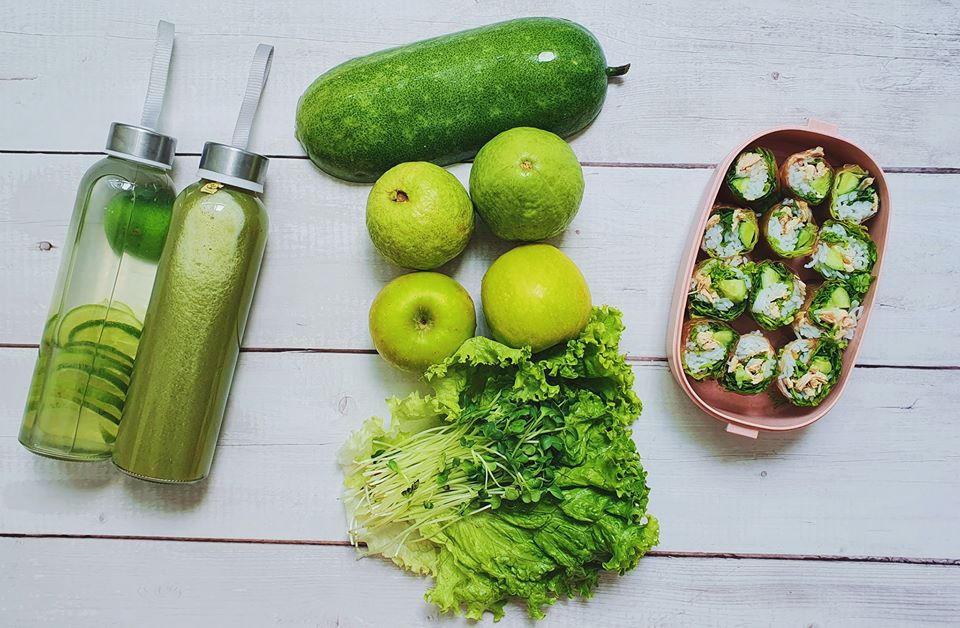Nước chanh detox. Nước Bí với ổi tốt cho tim mạnh. Và món gỏi cuốn với ức gà. (Ảnh: Khương Phạm)