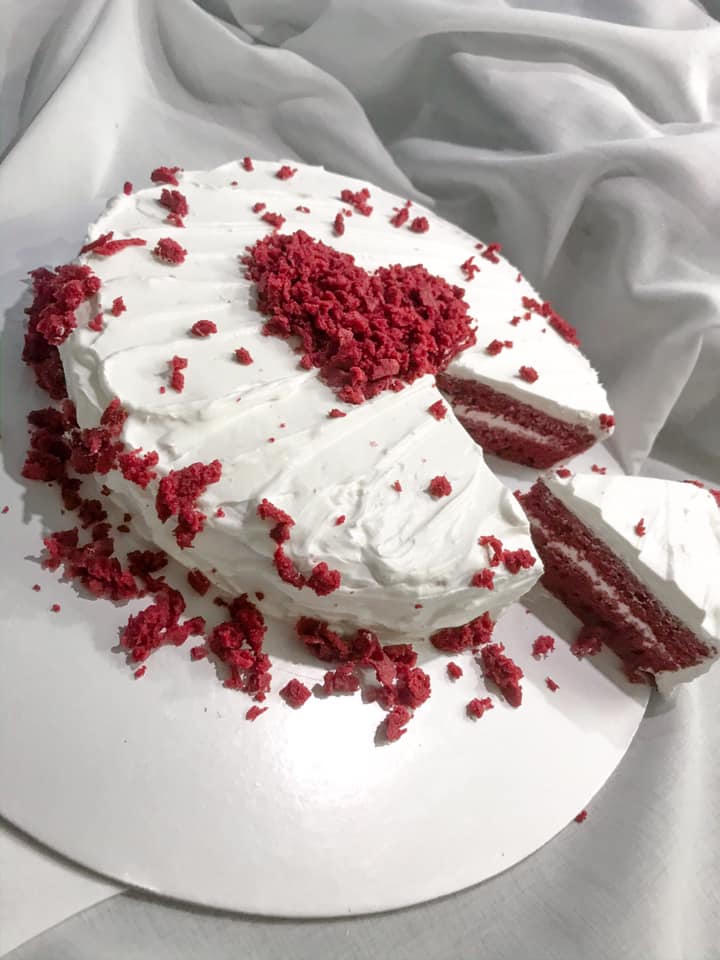 Chiếc bánh Red Velvet do Ngọc Anh tự làm nhân ngày sinh nhật tuổi 21 và khi cách ly tại nhà. (Ảnh: Ngọc Anh)