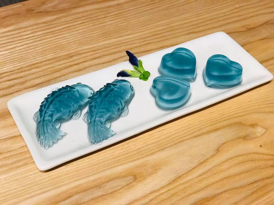 Món thạch từ đậu biếc nhà trồng. (Ảnh: Hoa Ntk)