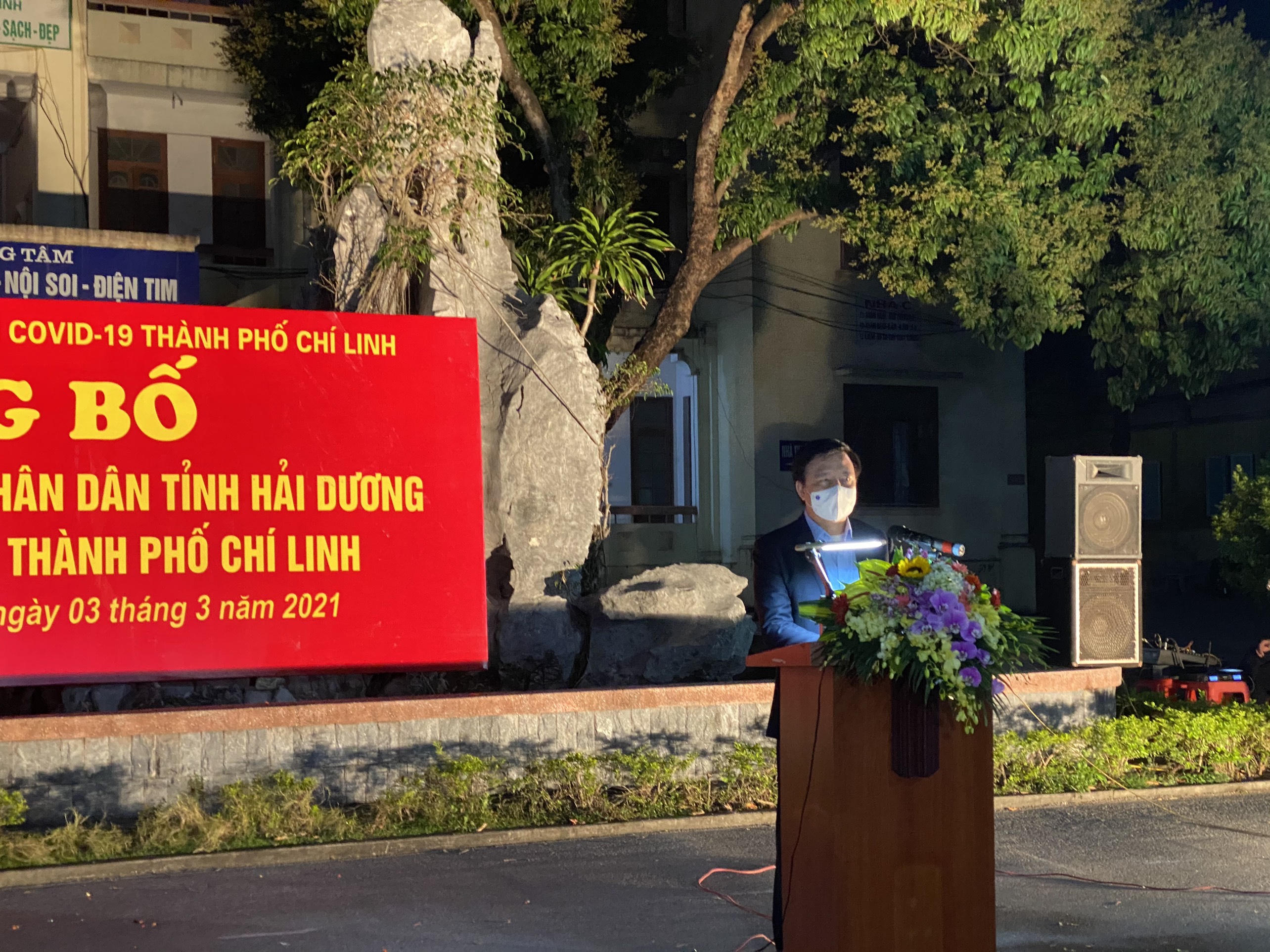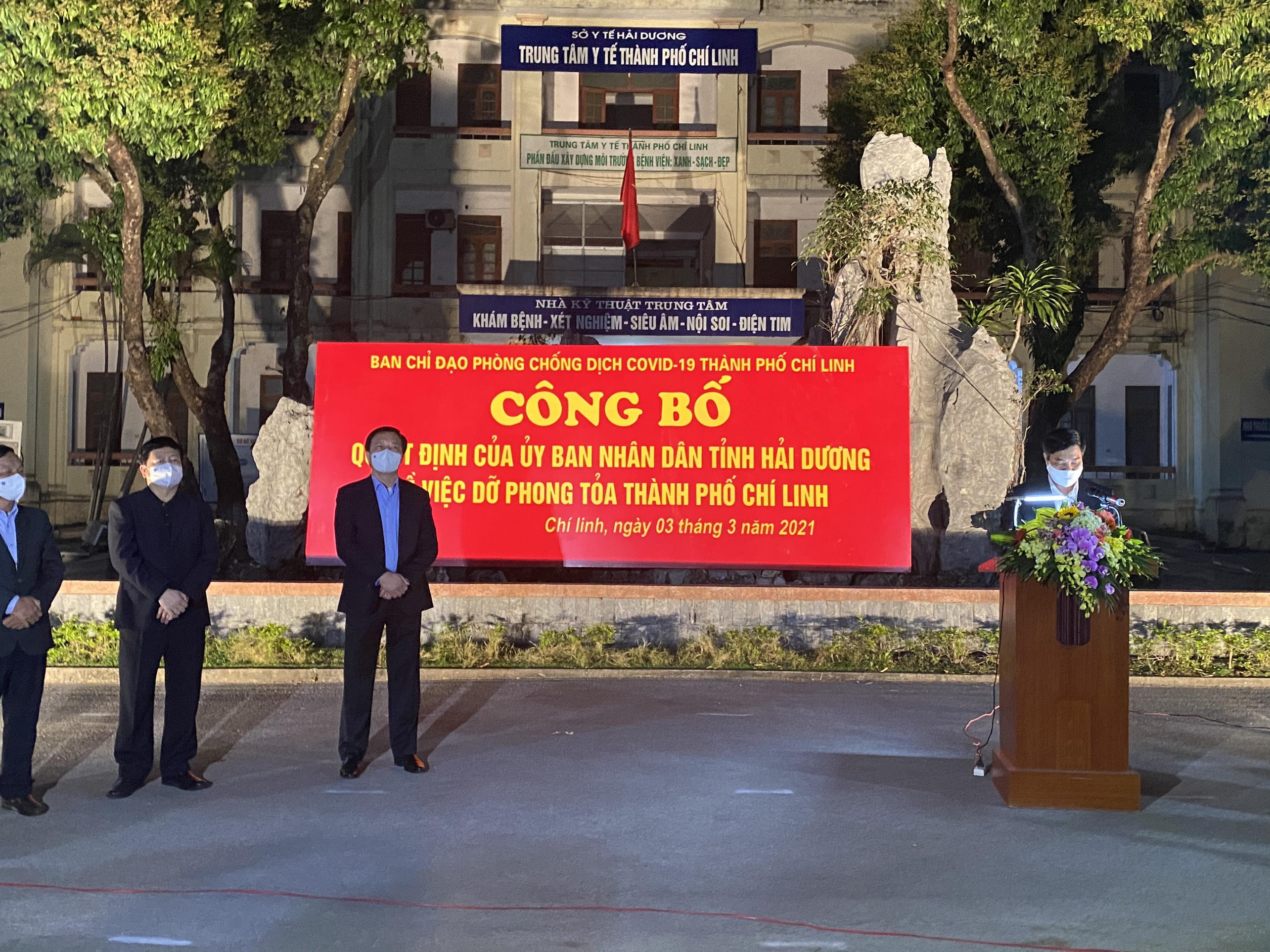 Phát biểu tại buổi công bố dỡ bỏ phong tỏa tại TP Chí Linh, Bí thư Tỉnh ủy Hải Dương Phạm Xuân Thăng cho hay, "hôm nay chúng ta có mặt tại đây để chứng kiến 1 sự kiện có ý nghĩa đặc biệt quan trọng đối với cuộc chiến đấu chống dịch COVID-19 của tỉnh Hải Dương. Đó là vào ngày 3/3/2021, TP Chí Linh kết thúc việc phong tỏa, và đây cũng là thời điểm toàn tỉnh Hải Dương kết thúc 15 ngày cách ly xã hội.