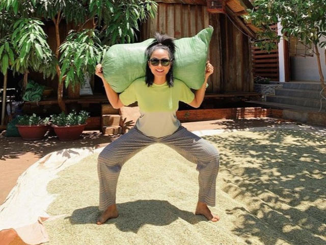 Với mái tóc dài hơn, "hoa hậu nông dân" càng thêm vẻ cuốn hút.