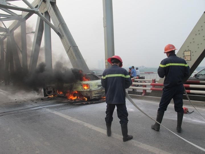 (PLO) -Khoảng 15h50 ngày 9/12, chiếc xe Fiat, biển kiểm soát 29N - 3320, lưu thông theo hướng từ Long Biên sang nội thành Hà Nội, khi đến nhịp cầu số 10 cầu Chương Dương bỗng dưng bốc cháy.