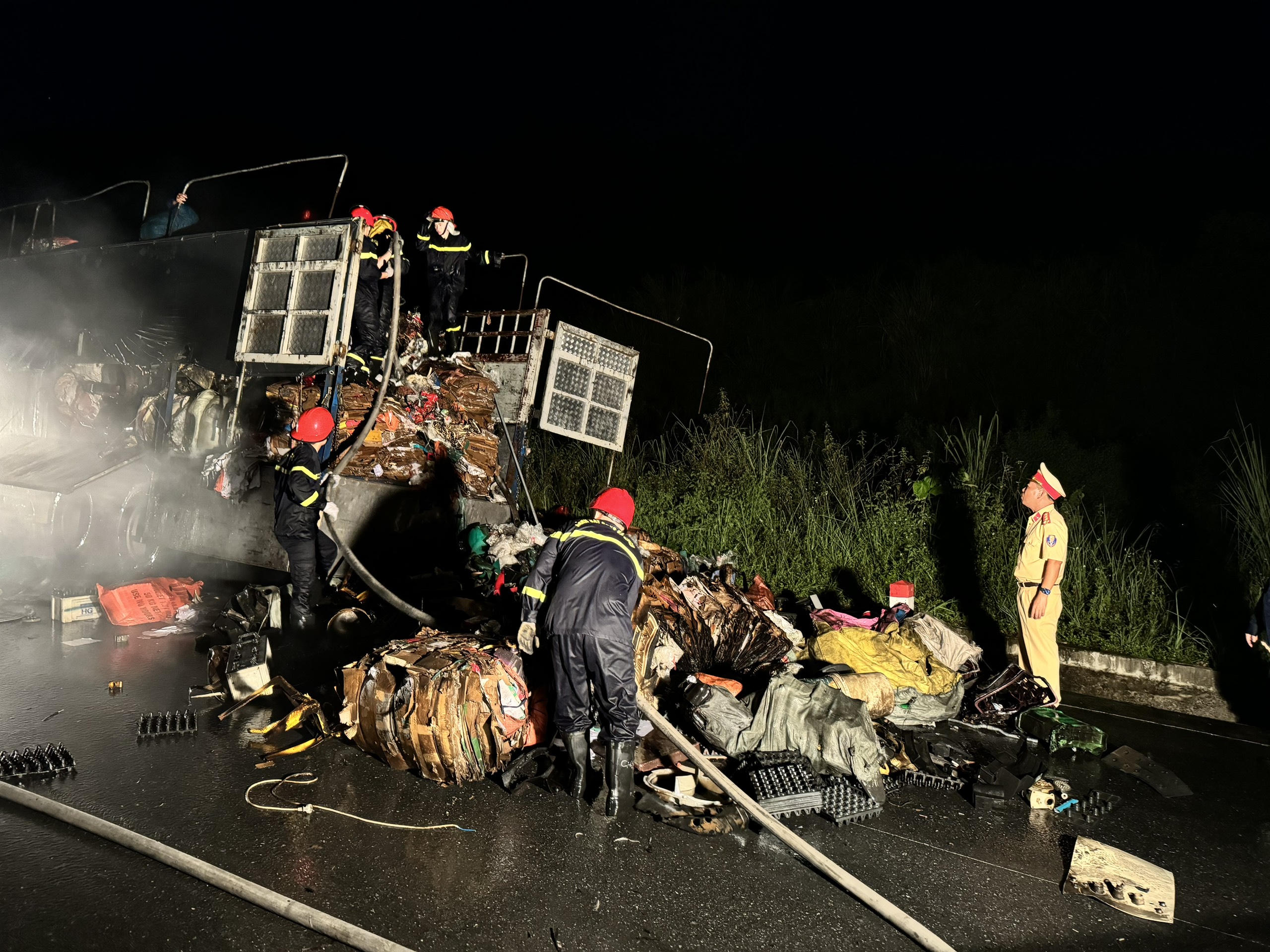 Ô tô chở phế liệu bốc cháy khi di chuyển trên đường
