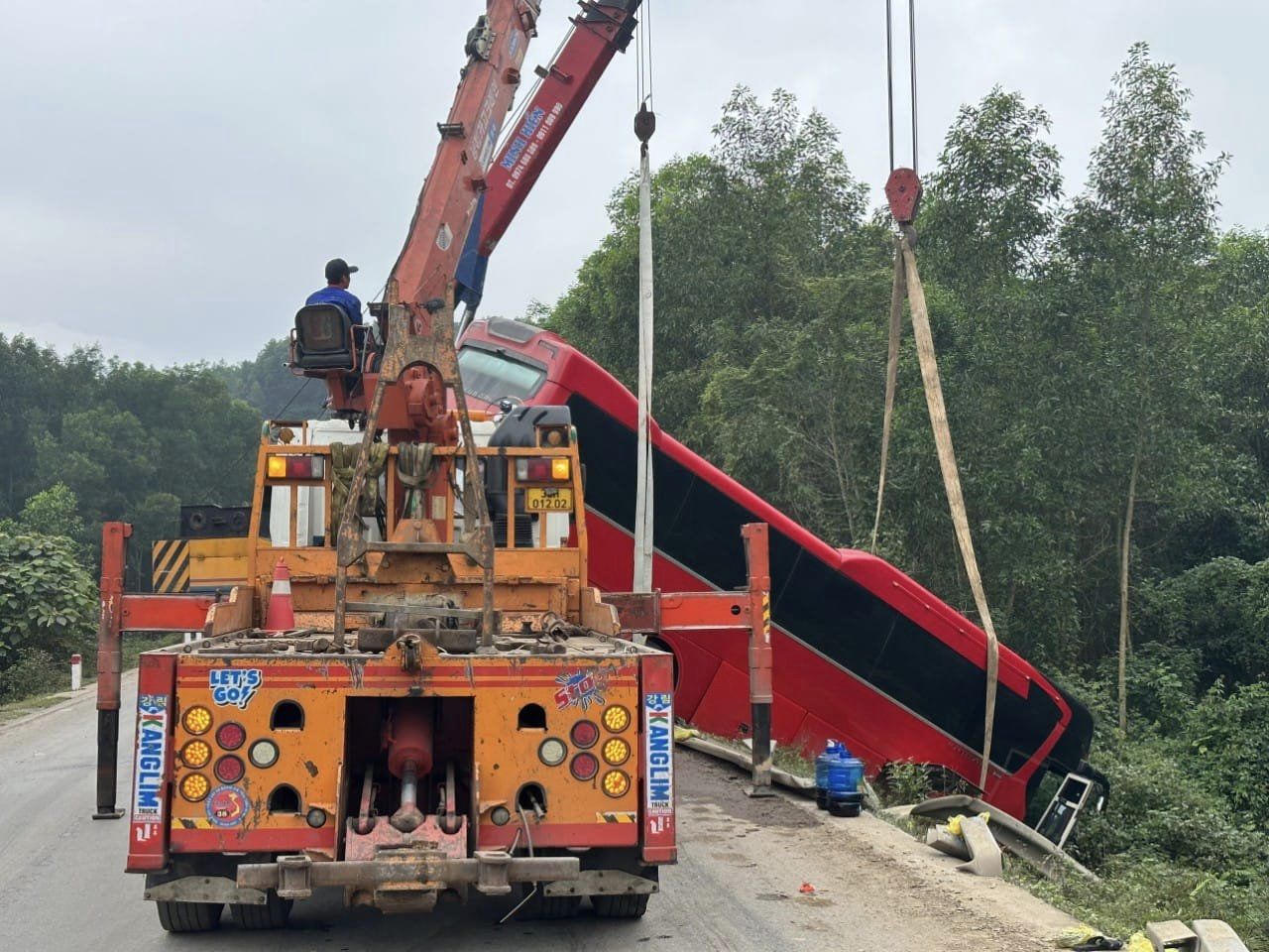 Khoảng 11h cùng ngày, xe khách gặp nạn đã được cẩu lên khỏi hiện trường.