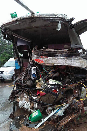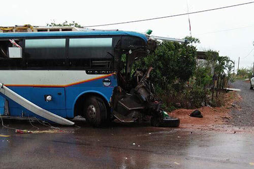Theo nhà chức trách, trời mưa to, đường vắng, xe khách chạy nhanh nên cú đâm đã gây hậu quả nghiêm trọng.
