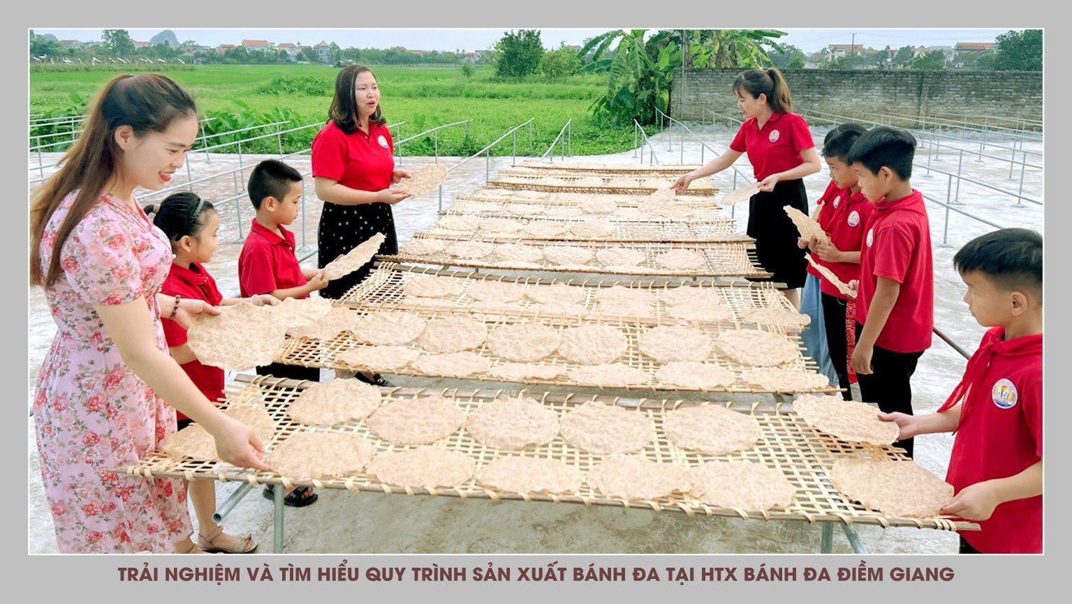 Trải nghiệm và tìm hiểu quy trình sản xuất bánh đa tại HTX bánh đa Điềm Giang. (Ảnh: UBND huyện Gia Viễn) |
