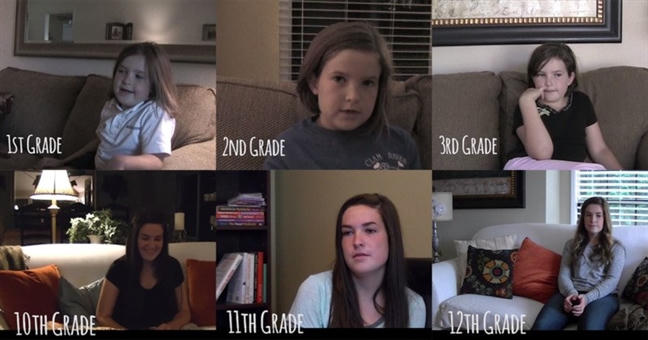 Tuần trước, anh Kevin Scruggs sống ở Washington, Mỹ bất ngờ dành tặng con gái yêu Mackenzie đoạn clip anh đã ghi hình cô bé suốt 12 năm liên tục, vào đúng thời điểm ngày đầu tiên con đến trường.