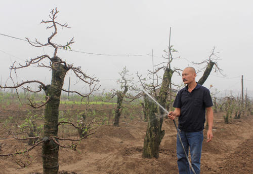 Ông chủ của vườn đào hơn 3.000 gốc và trang trại hàng trăm con lợn, gà. Ảnh: Hoàng Phương.