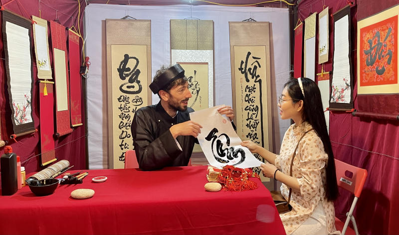 “Ông đồ” ngoại quốc tham dự Hội chữ xuân Quý Mão