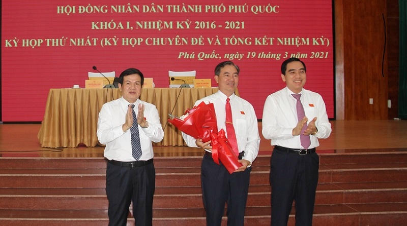(PLVN) - Sáng ngày 19/3, HĐND thành phố Phú Quốc khoá I, nhiệm kỳ 2016 -2021 đã tổ chức kỳ họp thứ nhất (kỳ họp chuyên đề và tổng kết nhiệm kỳ) đã giới thiệu nhân sự mới của UBND bầu bổ sung chức danh Phó chủ tịch UBND thành phố khoá I, nhiệm kỳ 2016 – 2021.