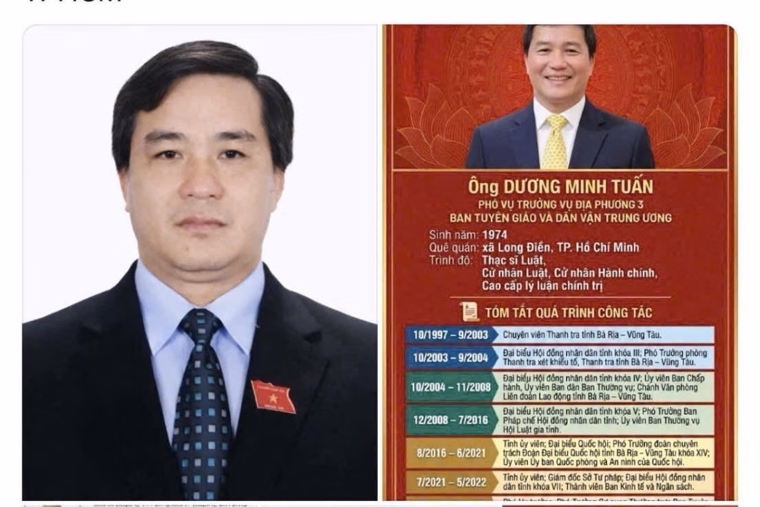 Ông Dương Minh Tuấn sinh ngày 24/11/1974, quê và cư trú tại xã Long Điền (TP HCM); có trình độ Thạc sĩ Luật, Cử nhân Luật, Cử nhân Hành chính và Cao cấp Lý luận chính trị. Ông từng công tác tại Thanh tra tỉnh Bà Rịa - Vũng Tàu; đảm nhiệm nhiều vị trí tại Liên đoàn Lao động, HĐND tỉnh; là đại biểu Quốc hội khóa XIV, Phó Trưởng đoàn chuyên trách Đoàn ĐBQH tỉnh, Ủy viên Ủy ban Quốc phòng và An ninh của Quốc hội; sau đó giữ chức Giám đốc Sở Tư pháp tỉnh và hiện là Phó Vụ trưởng Vụ Địa phương 3, Ban Tuyên giáo và Dân vận Trung ương.