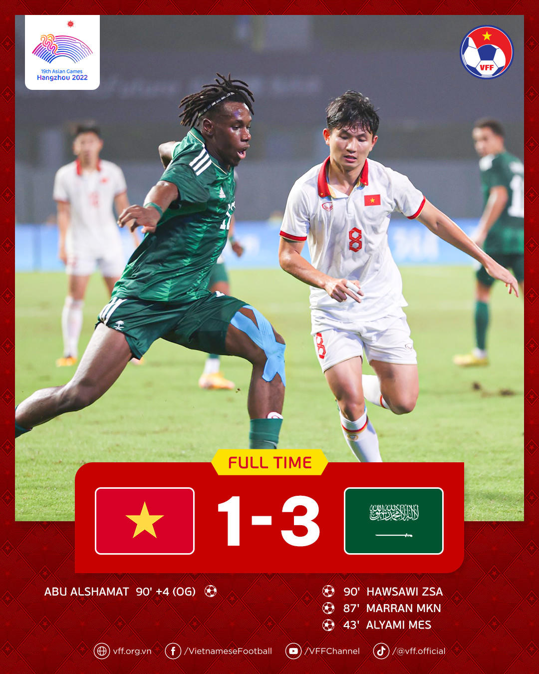 HLV Hoàng Anh Tuấn nói: “Hôm nay, mọi thứ đã qua. Tôi muốn gửi lời chúc mừng Ả rập Xê út. Ở trận cuối cùng, chúng tôi phải đối mặt với một đội bóng mạnh. Chúng tôi đã thua và cuộc chơi dừng ở đây. Nhưng chúng tôi có một đội hình trẻ, và giải đấu này sẽ là bài học rất tốt cho các cầu thủ trong tương lai”.