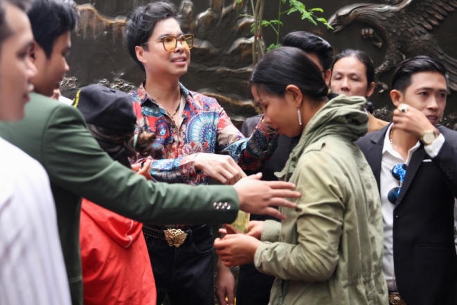 Dù tổ chức đúng ngày mưa bão lớn tại TP HCM nhưng bên ngoài cửa biệt thự có hàng trăm người dân xếp hàng để nhận quà. Buổi phát quà bắt đầu từ 10h sáng và kết thúc vào đầu giờ chiều.