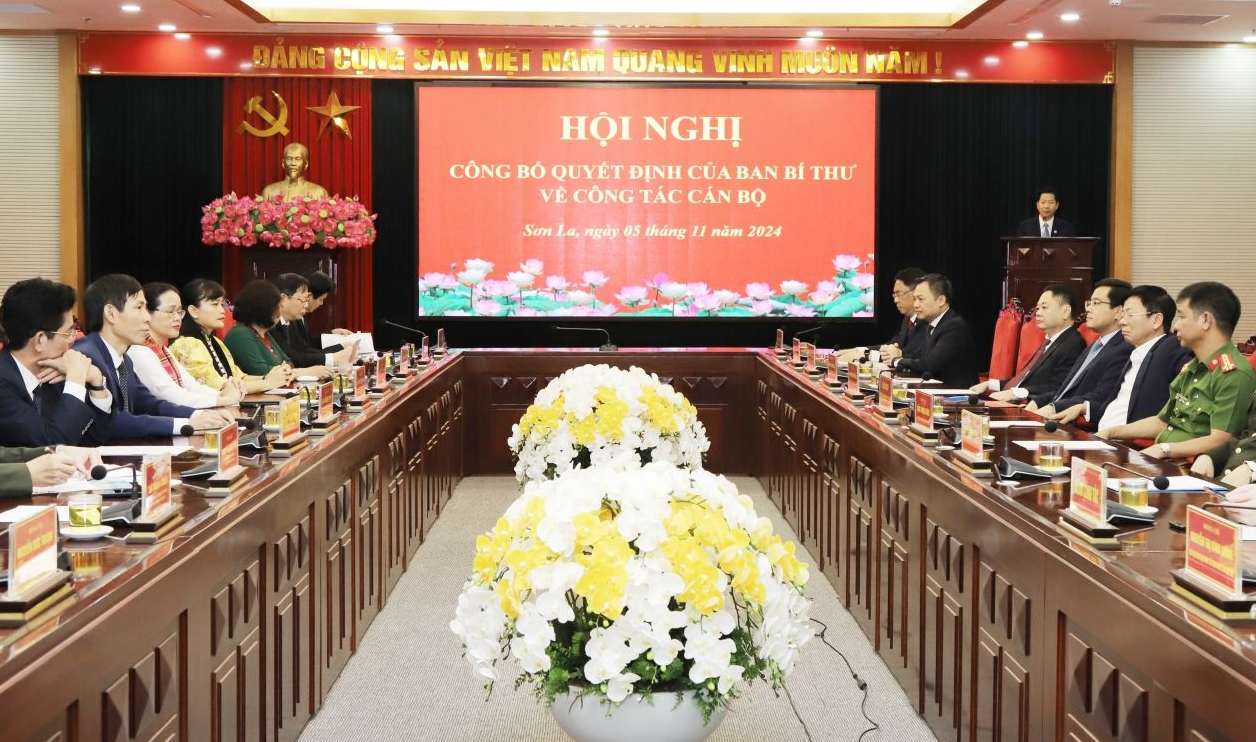 Cũng tại hội nghị, đã công bố Quyết định số 1648-QĐNS/TW ngày 1/11/2024 của Ban Bí thư Trung ương về chuẩn y ông Nguyễn Đức Thành - Tỉnh uỷ viên, Trưởng ban Tổ chức Tỉnh uỷ Sơn La tham gia Ban Thường vụ Tỉnh ủy Sơn La nhiệm kỳ 2020-2025; Quyết định số 1632-QĐNS/TW ngày 29/10/2024 của Ban Bí thư Trung ương về chỉ định các ông Nguyễn Minh Hải, Chánh án Toà án nhân dân tỉnh Sơn La; Đại tá Chu Văn Thành, Chỉ huy trưởng Bộ CHQS tỉnh Sơn La tham gia Ban Chấp hành Đảng bộ tỉnh Sơn La nhiệm kỳ 2020-2025.