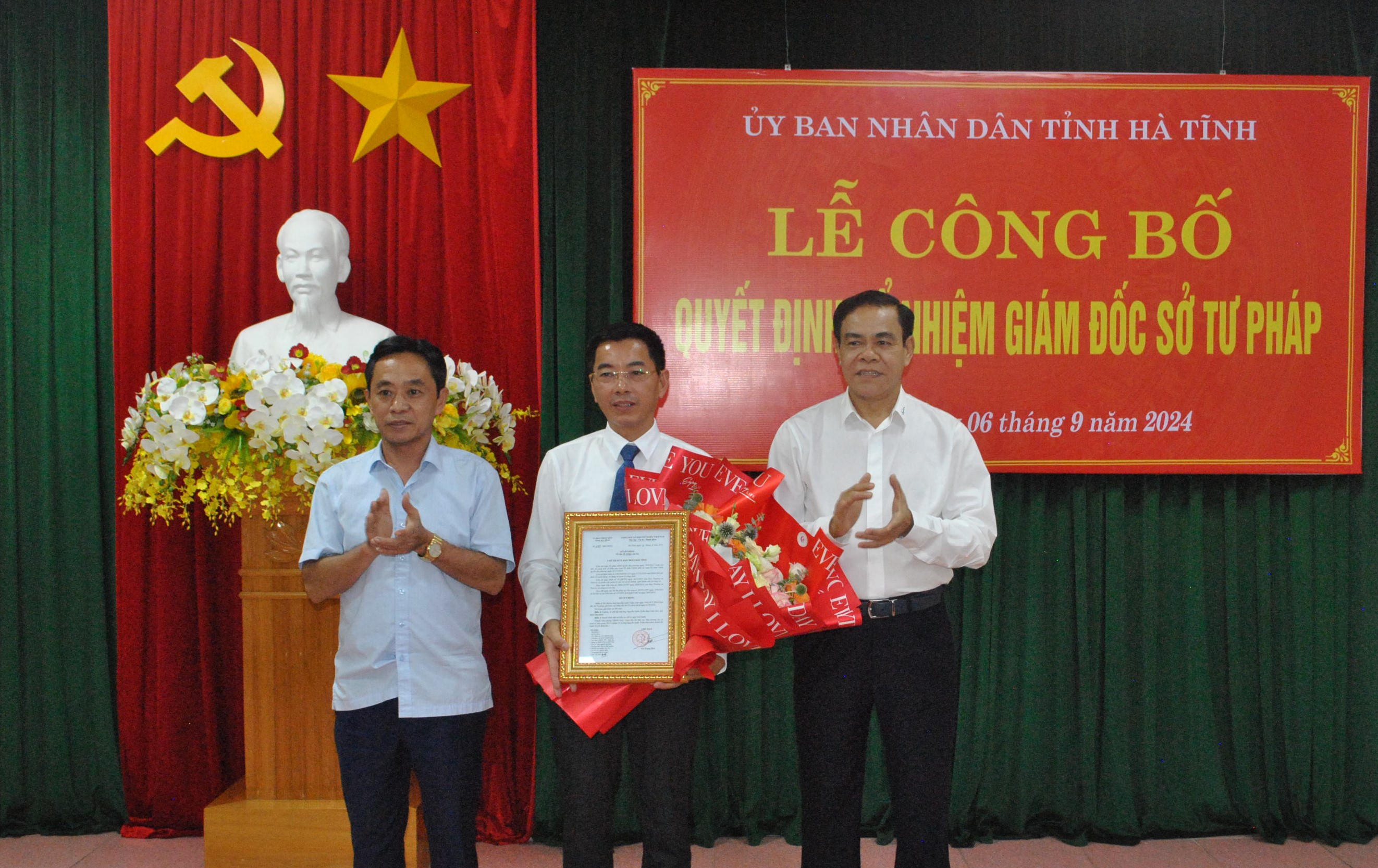 Chiều 6/9, Sở Tư pháp Hà Tĩnh tổ chức Lễ công bố quyết định của Chủ tịch UBND tỉnh Hà Tĩnh về việc bổ nhiệm Giám đốc Sở Tư pháp.