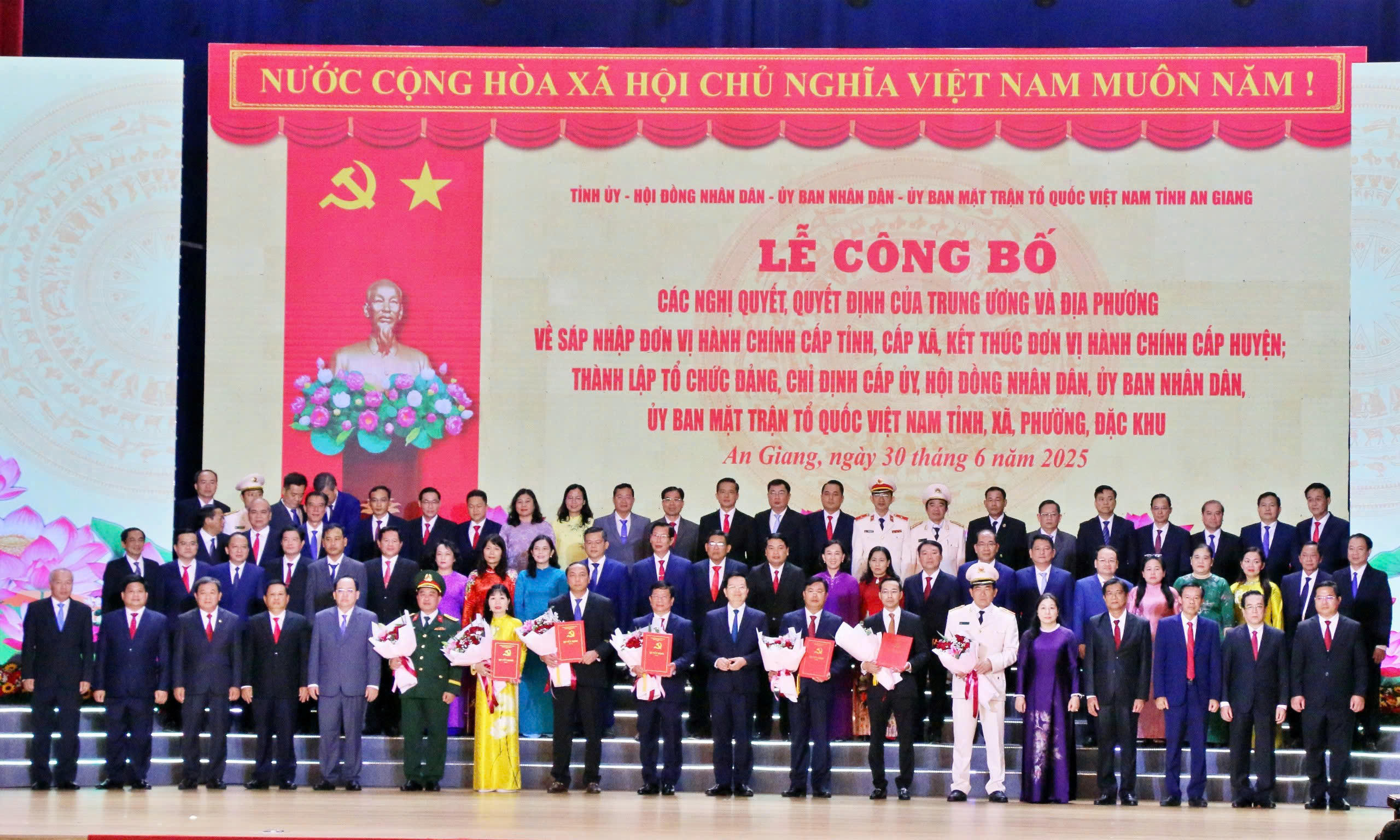 Hội nghị đã công bố các nghị quyết, quyết định quan trọng của Trung ương liên quan đến tỉnh An Giang mới. Về đơn vị hành chính cấp xã, tỉnh An Giang mới đã được tinh gọn còn 102 đơn vị, bao gồm 85 xã, 14 phường và 3 đặc khu hành chính gồm Phú Quốc, Thổ Châu và Kiên Hải.