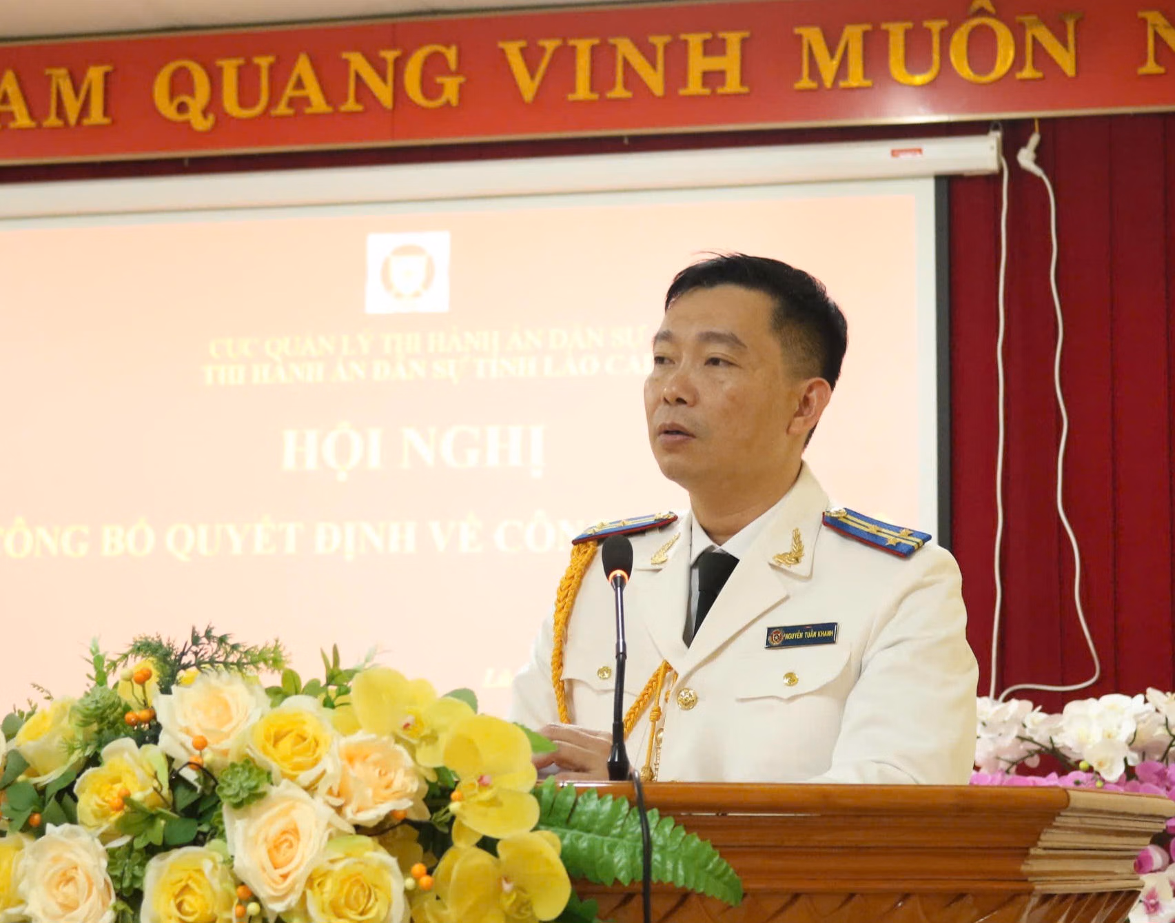 Tại buổi lễ, ông Vũ Trường Trinh, Phó Trưởng THADS tỉnh Lào Cai đã công bố quyết định số 26/QĐ-CQLTHADS của Cục trưởng Cục quản lý THADS về việc bổ nhiệm ông Nguyễn Tuấn Khanh, Chấp hành viên trung cấp, Trưởng phòng Phòng Thi hành án dân sự khu vực 1, tỉnh Lào Cai giữ chức vụ Phó Trưởng Thi hành án dân sự tỉnh Lào Cai, kể từ ngày 01 tháng 02 năm 2026.