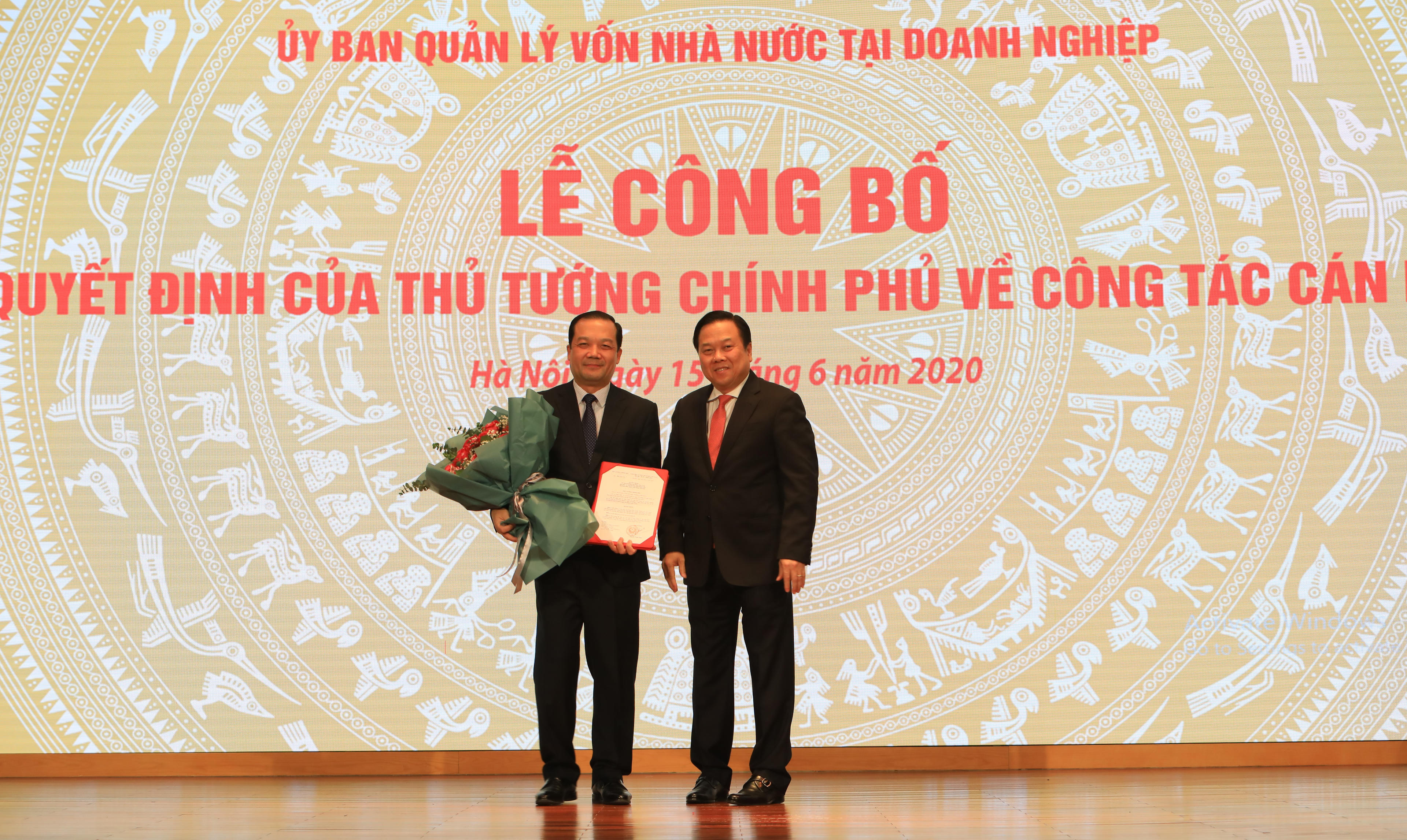 Ông Nguyễn Hoàng Anh, Chủ tịch Ủy ban Quản lý vốn nhà nước tại doanh nghiệp, trao cho ông Phạm Đức Long, Tổng giám đốc VNPT, Quyết định bổ nhiệm Chủ tịch Hội đồng thành viên VNPT.