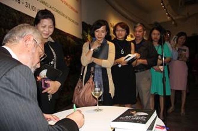 | Giáo sư Vargyas Gábor ký tặng sách trong trưng bày “Thần linh, tổ tiên và thầy cúng: Người Bru Vân Kiều ở dãy Trường Sơn” tại Bảo tàng Dân tộc học |