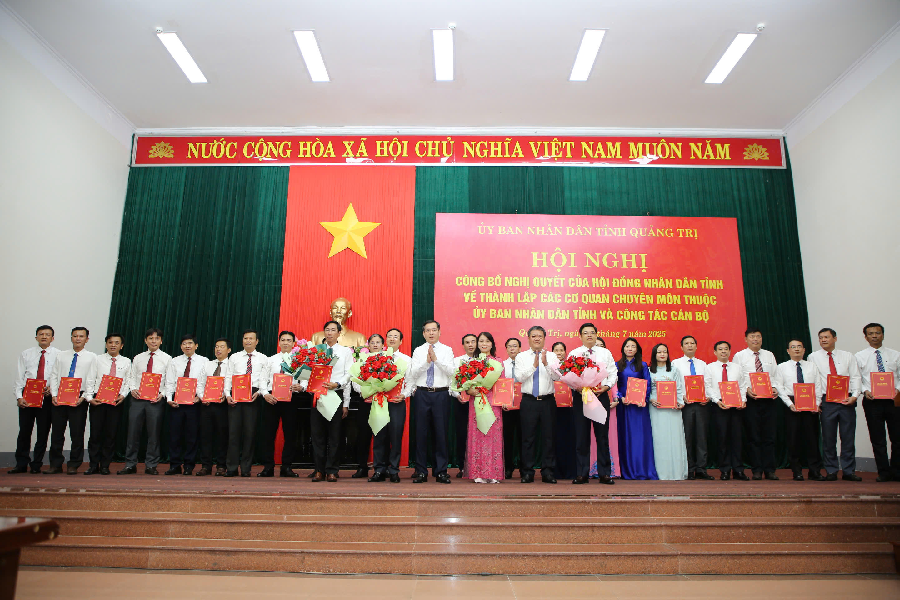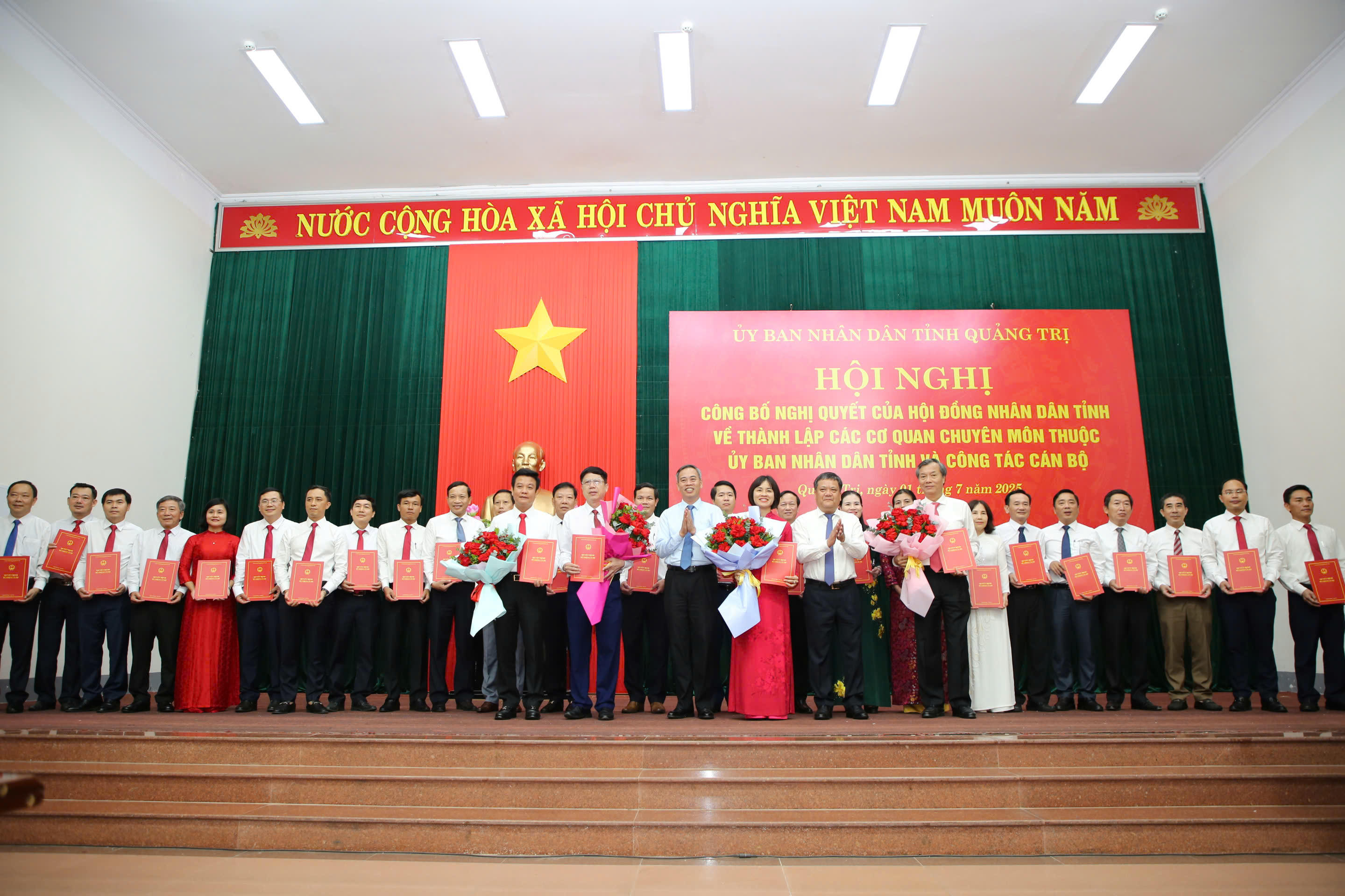 Chiều 1/7, UBND tỉnh Quảng Trị tổ chức Hội nghị công bố các Nghị quyết của HĐND tỉnh về thành lập cơ quan chuyên môn thuộc UBND tỉnh và các quyết định của Chủ tịch UBND tỉnh về công tác cán bộ sau hợp nhất.