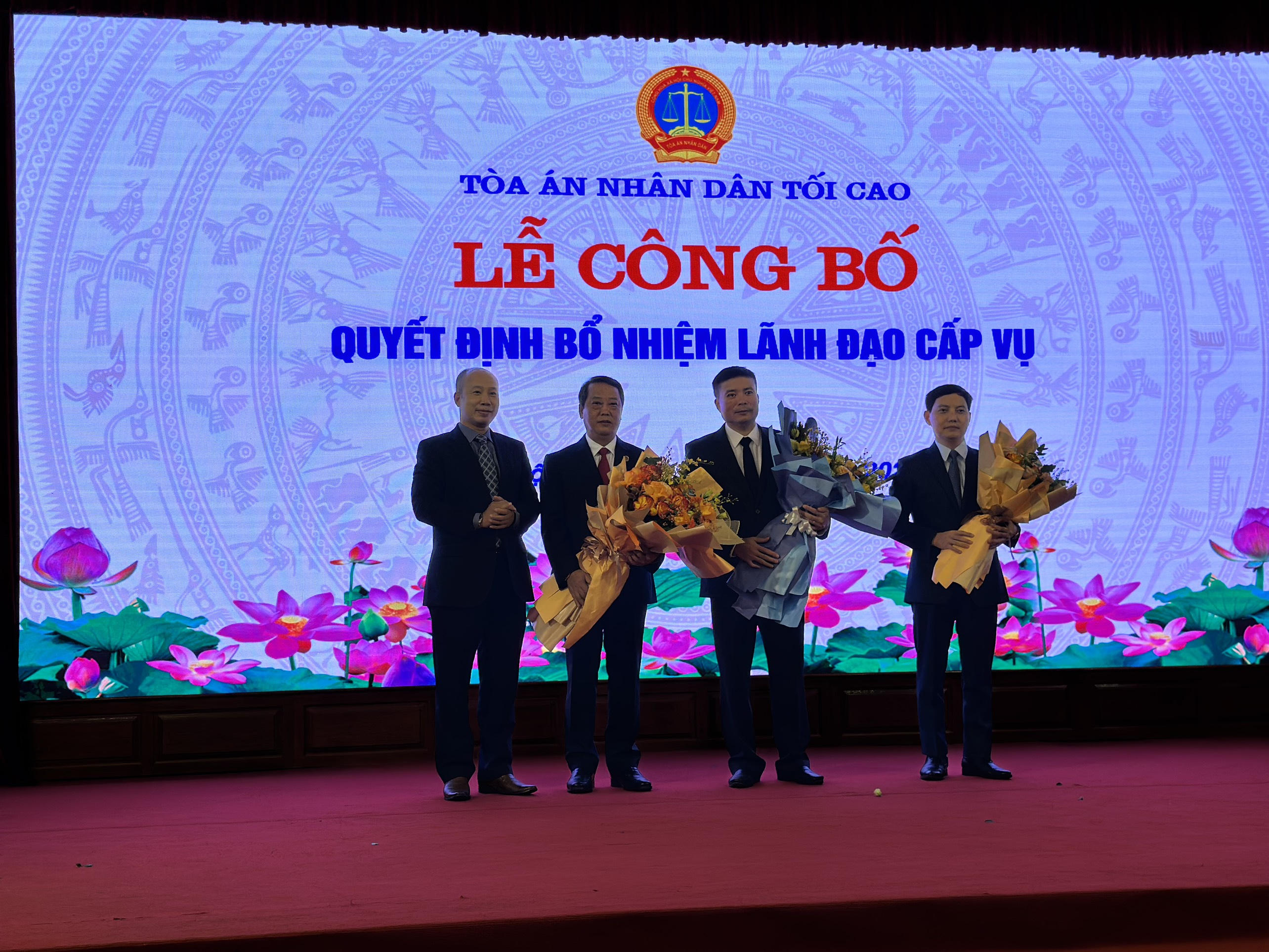 Tại buổi lễ, Chánh án TAND tối cao Nguyễn Hoà Bình đã trao quyết định bổ nhiệm cho ông Nguyễn Tường Linh; ông Nguyễn Xuân Kỳ và ông Trần Đức Vinh.