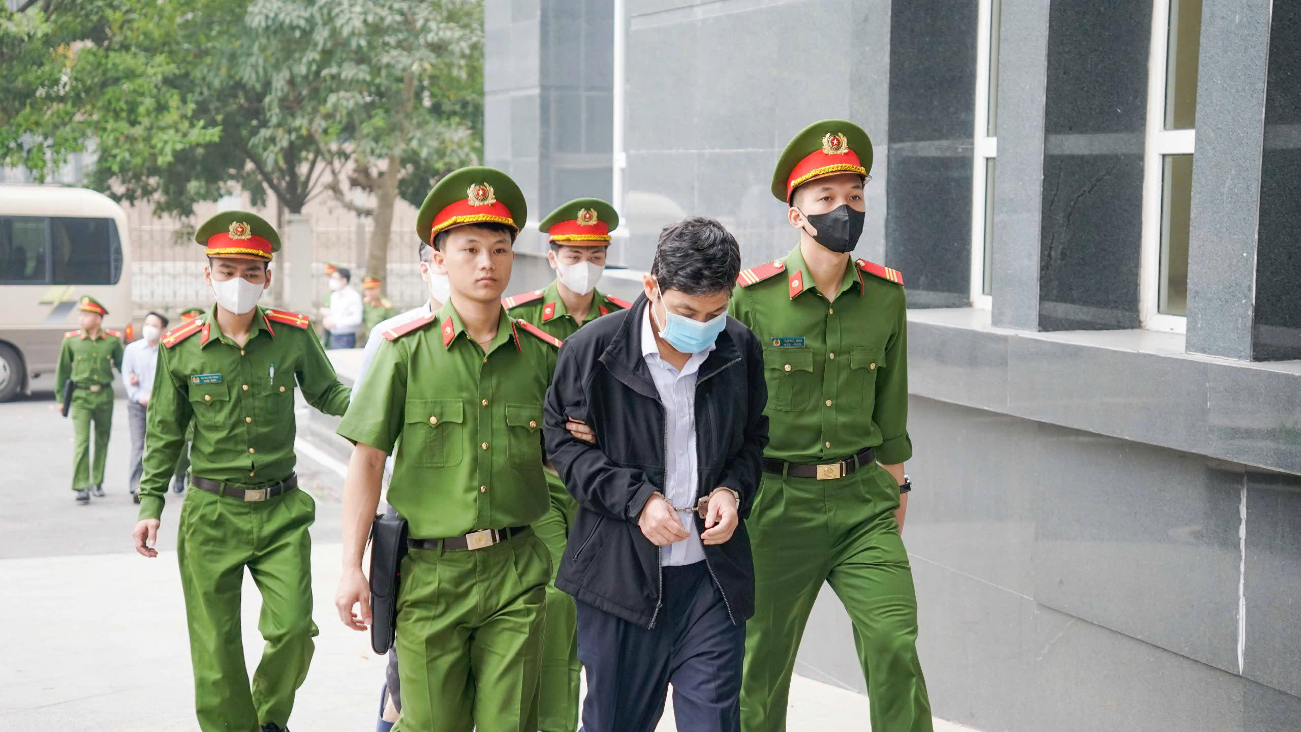 Dẫn giải bị cáo vào tòa. |