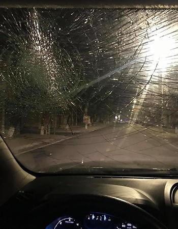 Xe bán tải bị ném đá vỡ kính.Ảnh: Đại Dương. |