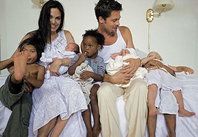 Bức ảnh gia đình Jolie – Pitt vừa chào đón hai thành viên mới, cặp song sinh Vivienne và Knox. Pax rất yêu quý hai em, thường vào bếp làm bánh cho các em. Angelina từng chia sẻ, cậu bé là đầu bếp giỏi nhất nhà.