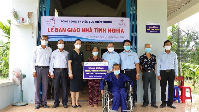 (PLVN) - Mới đây, PC Quảng Ngãi đã hoàn thành việc hỗ trợ xây dựng và trao tặng nhà tình nghĩa cho 5 hộ gia đình tại Sơn Hà, Bình Sơn, Sơn Tịnh, Ba Tơ và Nghĩa Hành mỗi hộ 50 triệu đồng.