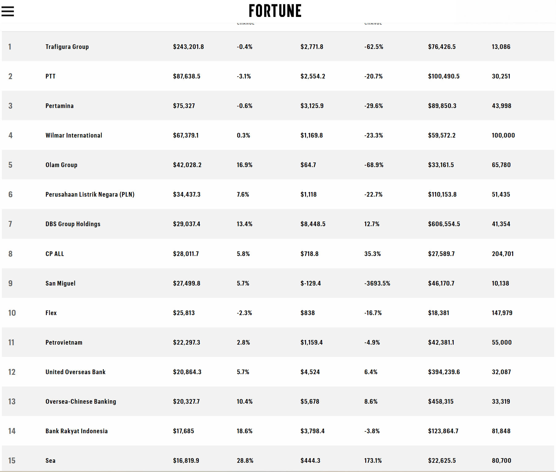 Top 15 doanh nghiệp lớn nhất khu vực Đông Nam Á. |