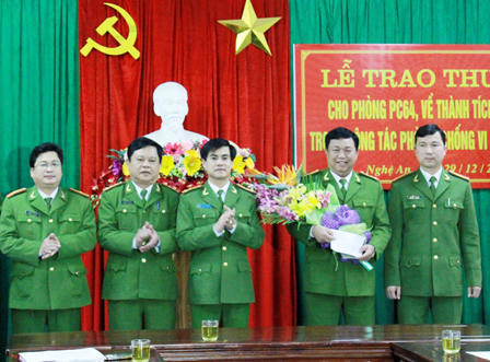 Với thành tích đặc biệt xuất sắc của các lực lượng, chiều ngày 29/12, Ủy ban tỉnh tặng hoa chúc mừng trao thưởng Phòng PC 64 Công an Nghệ An 10 triệu đồng và Phòng PC46 Công an Nghệ An 20 triệu đồng.