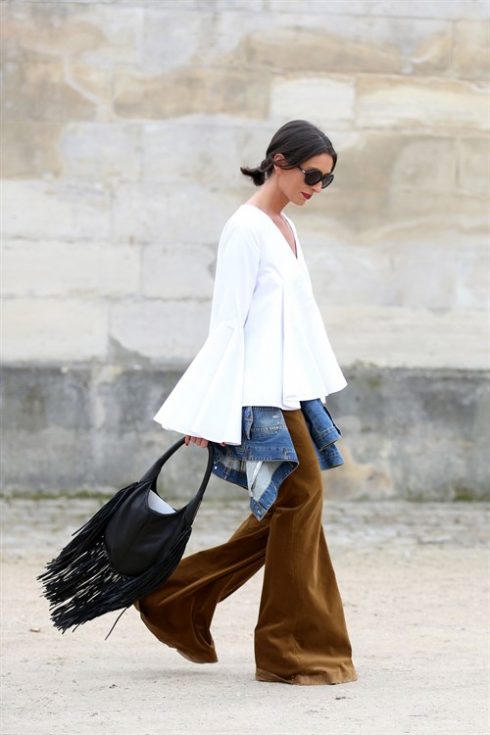 Chi tiết xẻ tà trên một chiếc váy không có gì lạ lẫm. Trong mùa Thu – Đông này, một vài chiếc quần ống rộng cũng được thêm thắt những đường xẻ táo bạo để các fashionista tha hồ biến hóa với phong cách thời trang của mình, nhằm khoe phần chân nuột nà.