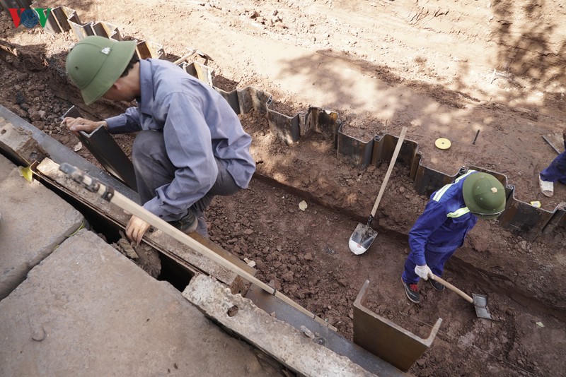 Một số hình ảnh hoạt động tháo dỡ con đường gốm sứ để phục vụ cho việc thi công giai đoạn 2 của Dự án xây cầu vượt tại nút giao An Dương - đường Thanh Niên: