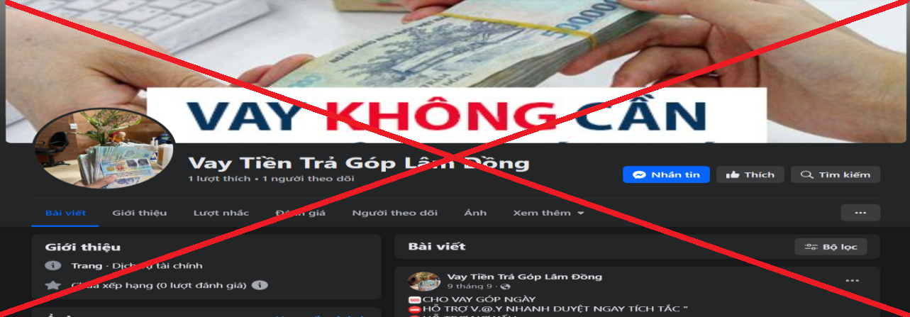 Các đối tượng lập ra các trang trên mạng xã hội để quảng cáo hoạt động cho vay. |