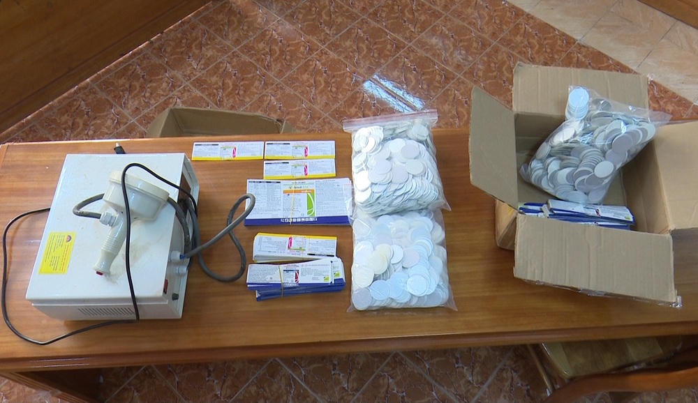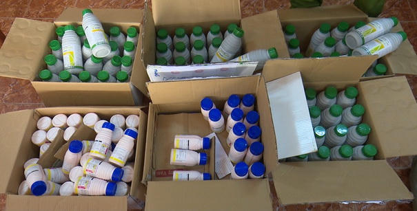 Kiểm tra nơi ở của 3 đối tượng, lực lượng chức năng thu giữ nhiều vỏ chai, nắp chai, máy đóng nắp, bột màu, nhãn hiệu của nhiều loại thuốc bảo vệ thực vật… và nhiều dụng cụ phục vụ cho việc sang chiết, pha chế thuốc bảo vệ thực vật giả.