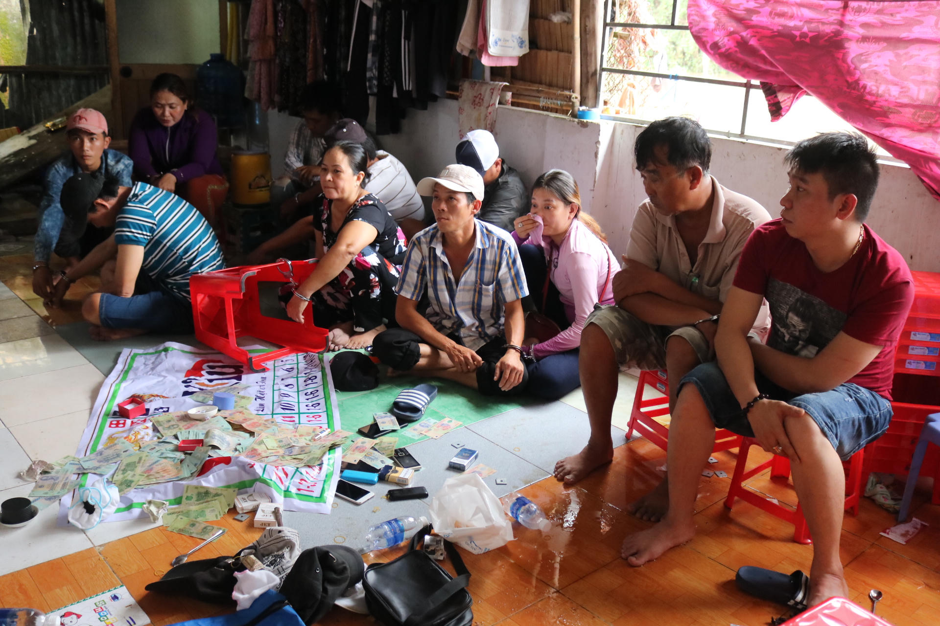 Tại hiện trường, lực lượng Công an đã tạm giữ 12 đối tượng (trong đó có cả phụ nữ), 01 bộ tài xỉu, gần 500 triệu đồng, hơn 10 chiếc xe máy và nhiều dụng cụ, phương tiện dùng cho việc đánh bạc.