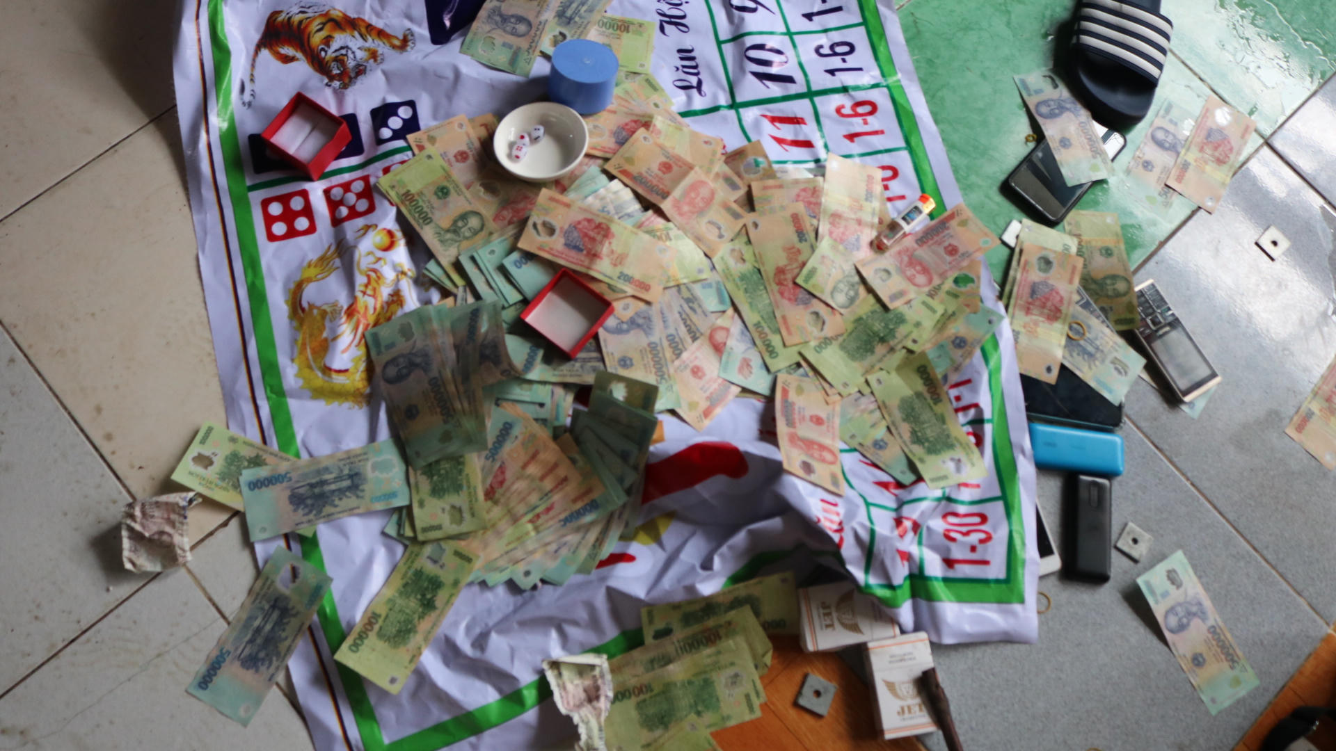 Mỗi ngày có nhiều con bạc từ các nơi tụ lại đây chơi lắc tài xỉu ăn tiền, số tiền cá cược cho một lần ăn thua từ 30 đến 50 triệu đồng.