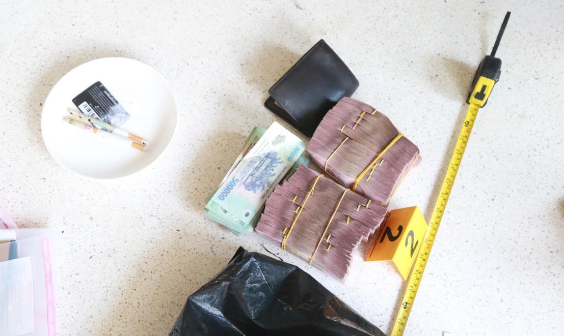 Thực hiện kế hoạch phá án, vào lúc 5h sáng 13/5, tại số nhà 1/170 đường Lý Nam Đế, phường Kim Long, Ban Chuyên án đã bắt quả tang nhóm 5 đối tượng. Tang vật thu giữ được gồm 5 gói ma túy tổng hợp dạng đá có khối lượng 5kg và 600 triệu đồng.