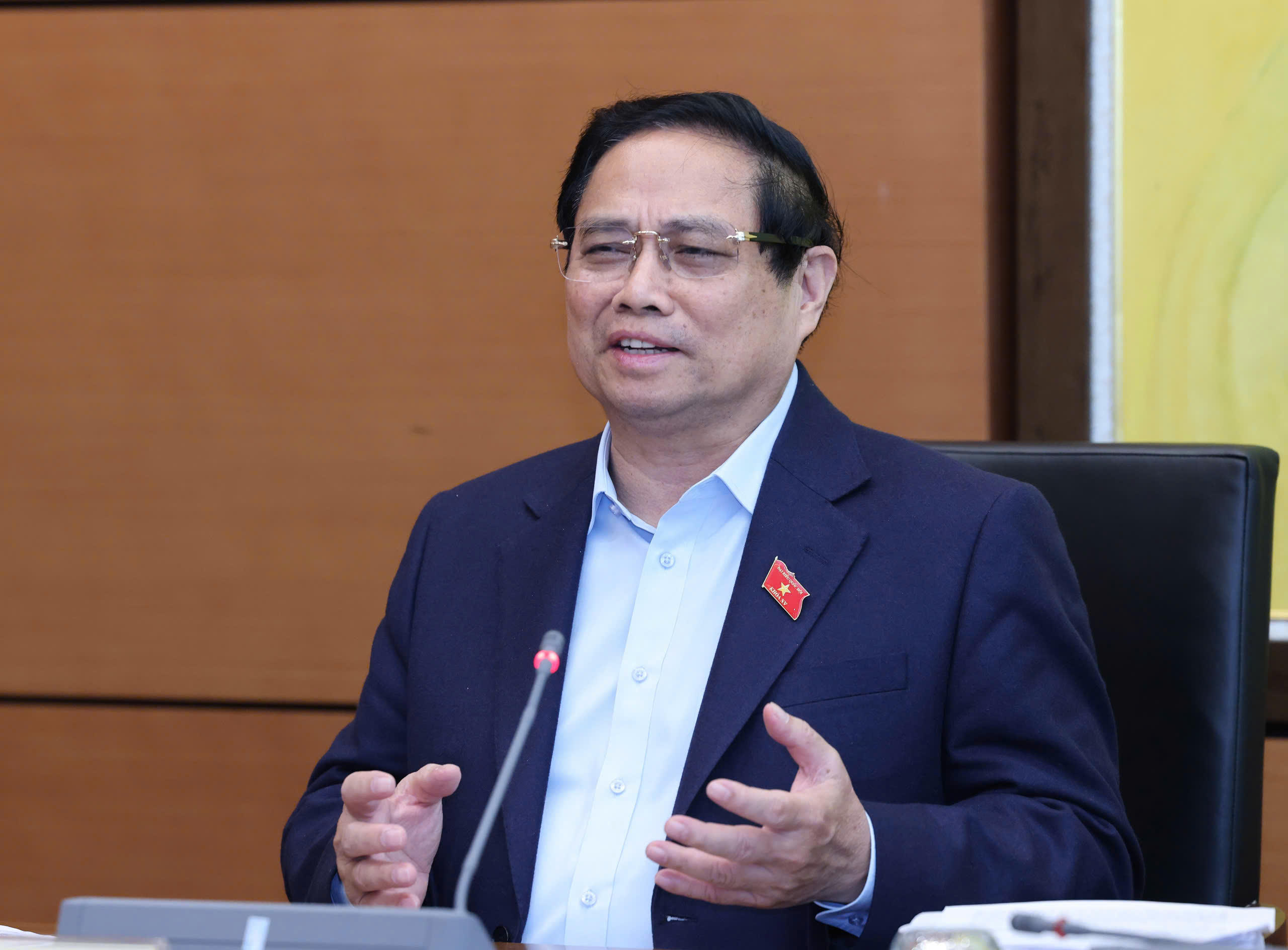Thủ tướng Phạm Minh Chính thảo luận tại Tổ sáng 15/2. (Ảnh: M.Trang) |