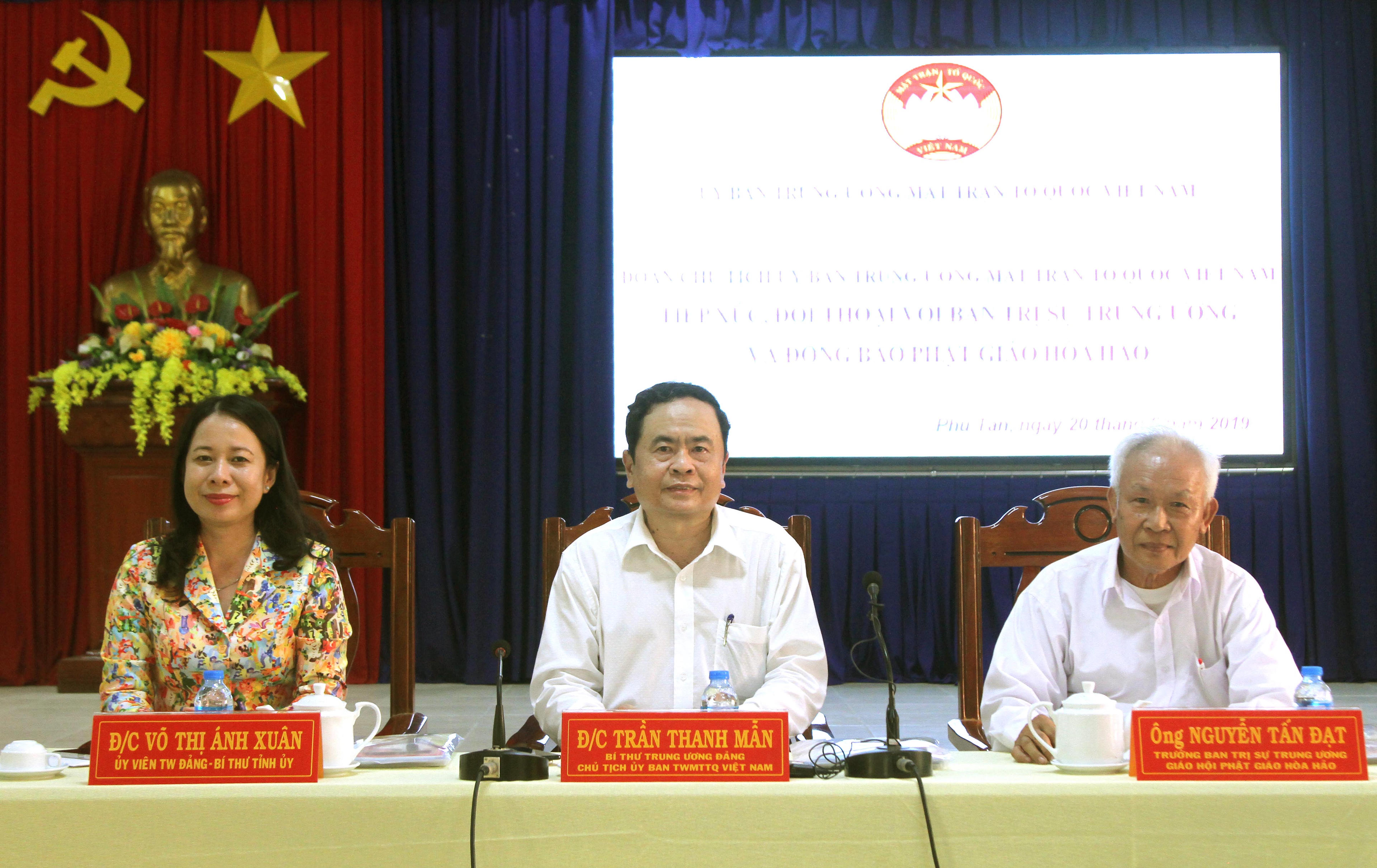 (PLVN) -Đó là yêu cầu của Bí thư Trung ương Đảng, Chủ tịch Ủy ban Trung ương Mặt trận Tổ quốc (UBTƯ MTTQ) Việt Nam Trần Thanh Mẫn khi chủ trì cuộc tiếp xúc, đối thoại với Ban Trị sự Trung ương, các vị chức việc và đồng bào Phật giáo Hòa Hảo (PGHH) tại huyện Phú Tân, tỉnh An Giang, diễn ra hôm nay (20/6).